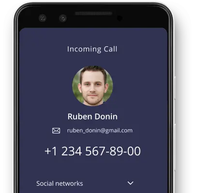 Get Facebook, Instagram, LinkedIn, and Twitter profiles of the person who stands behind the incoming call.